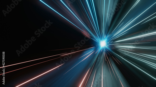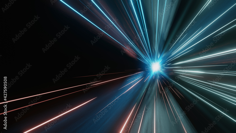 Wall mural 3d rendering of abstract fast moving stripe lines with glowing light flare. high speed motion blur.  - Wall murals Wall mural 3d rendering of abstract fast moving stripe lines with glowing light flare. high speed motion blur. - Wall murals