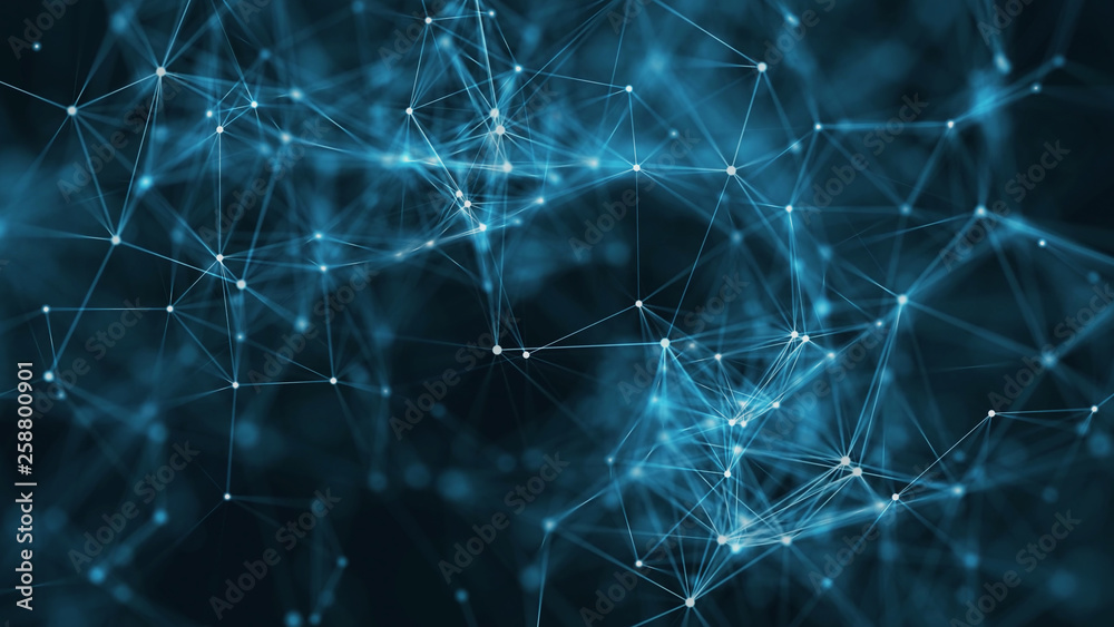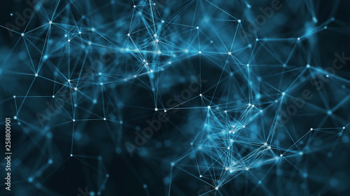 Wall mural 3d rendering of abstract forms of plexus, points and light rays with points of light. abstract digit