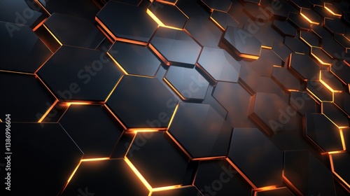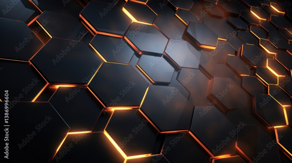 3d rendering of abstract hexagon metal texture with golden light backgroundWall mural