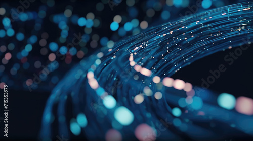 Wall mural : 3d rendering of abstract wire cable tunnel with digital binary data transmitting - depth of field eff