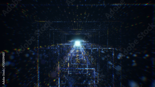 The watermark will not be included on Wall mural.: 3d rendering of an abstract digital tunnel in cyberspace made of particles