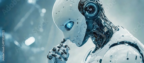 Wall mural : 3d rendering of an artificial intelligence robot or cyborg performing analysis or computation