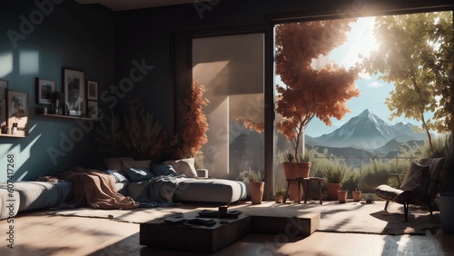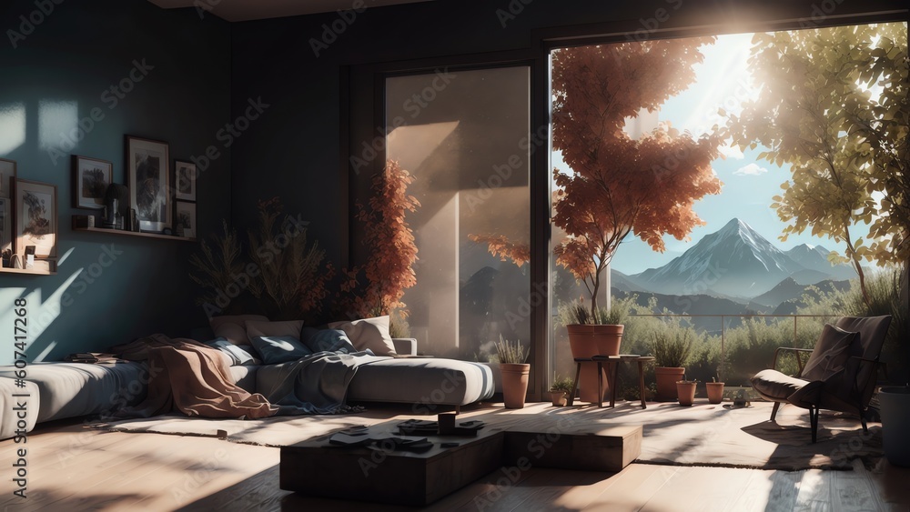The watermark will not be included on Wall mural.: 3d rendering of an empty - dark warehouse - generative ai