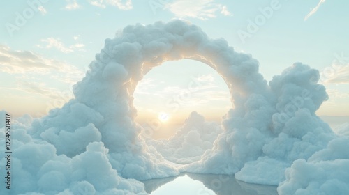 Wall mural 3d rendering of beautiful white clouds in curved shape with blue sky background - Wall murals Wall mural 3d rendering of beautiful white clouds in curved shape with blue sky background - Wall murals