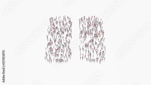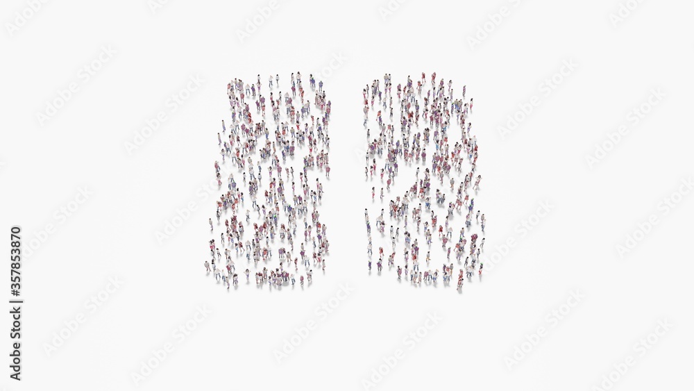 3d rendering of crowd of people in shape of symbol of pause on white background isolatedWall mural