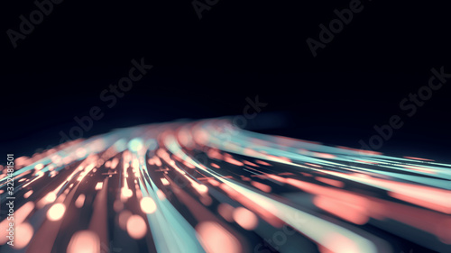 Wall mural : 3d rendering of curved blue and red light path trail with bokeh blur effect - concept of way to succe
