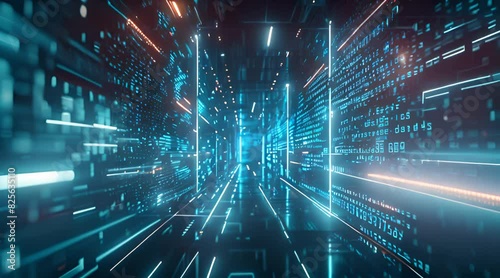 Wall mural 3d rendering of digital background with blue glowing data and numbers.