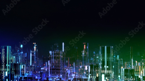 The watermark will not be included on Wall mural.: 3d rendering of digital city at night with various color led glowing lights - concept of big data, ma