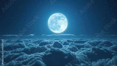 The watermark will not be included on Wall mural.: 3d rendering of full moon shining above the clouds at night sky background -