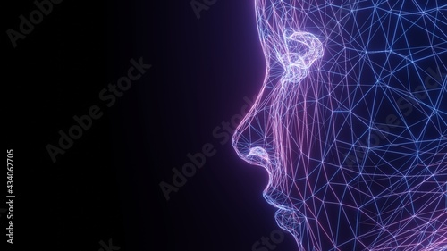 Wall mural 3d rendering of human female face created from wireframe mesh. for information technology background