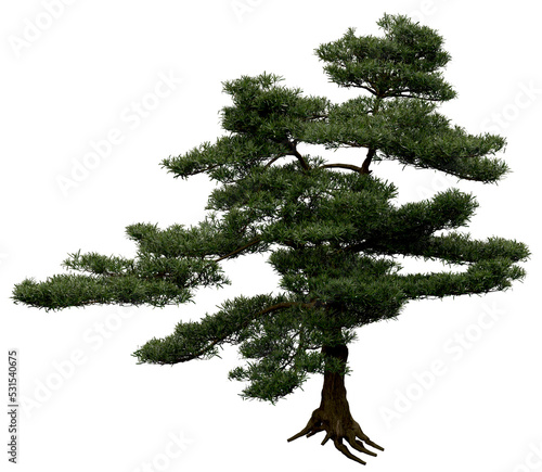 Wall mural 3d rendering of podocarpus macrophyllus png vegetation tree for compositing or architectural use. no