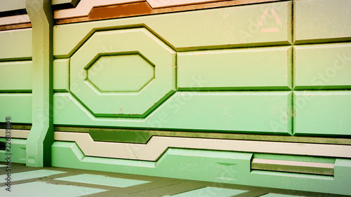 The watermark will not be included on Wall mural.: 3d rendering of realistic sci-fi spaceship corridor