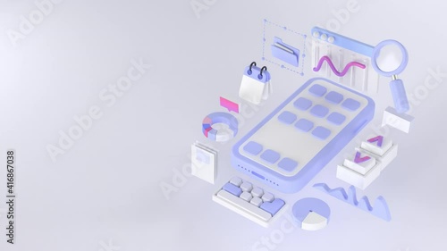 Wall mural 3d rendering of smartphone and application. - Wall murals Wall mural 3d rendering of smartphone and application. - Wall murals