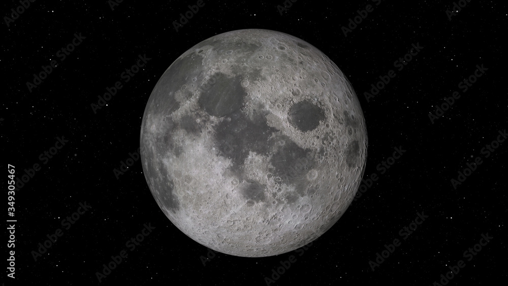 The watermark will not be included on Wall mural.: 3d rendering of the moon against the background of space with the illumination of craters and lunar