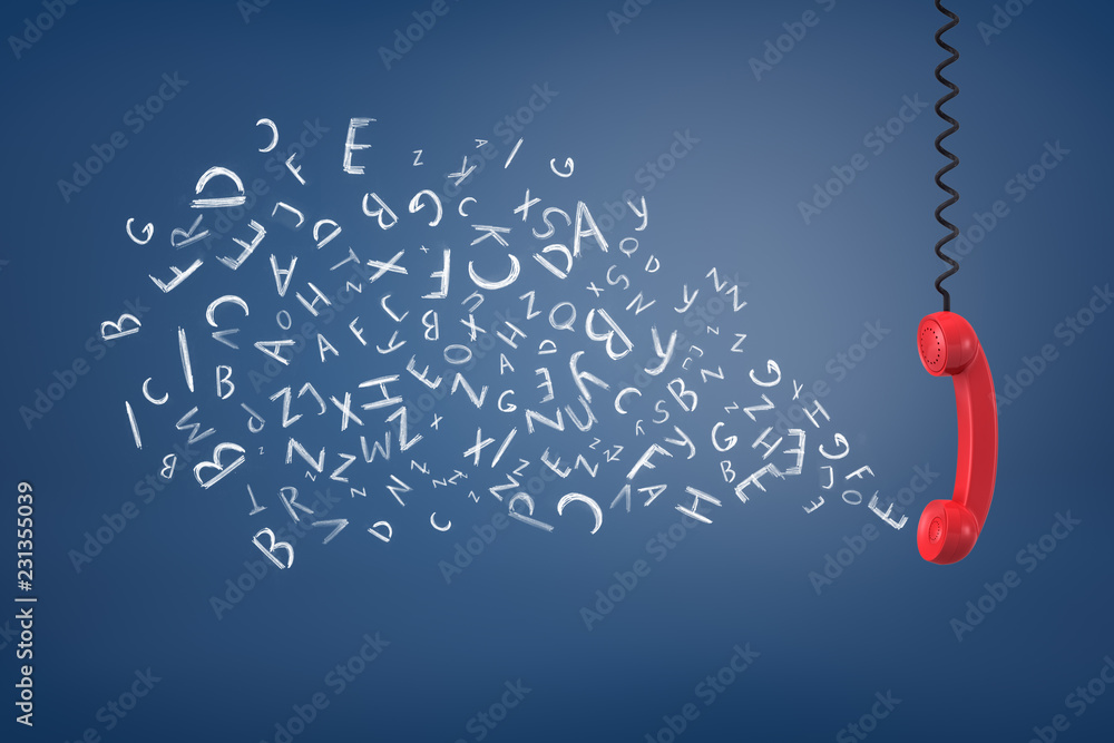 Wall mural 3d rendering of vintage red phone handset hanging upside down from a cord and emitting many sound an