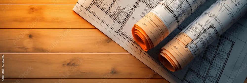 Wall mural 3d rendering project of new building model house on blueprint plan