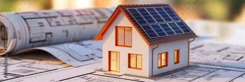 Wall mural 3d rendering project of new building model house on blueprint plan