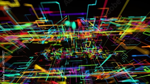 Wall mural 3d rendering sci-fi bg like abstract hologram. multicolor neon glow lines form digital 3d space. con - Wall murals Wall mural 3d rendering sci-fi bg like abstract hologram. multicolor neon glow lines form digital 3d space. con - Wall murals