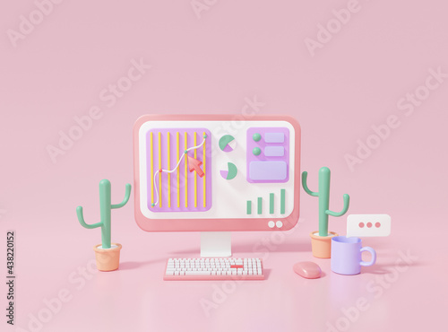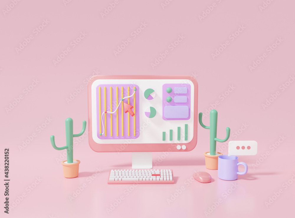 Wall mural 3d rendering seo or search engine optimization marketing concept. growth web analytics click search