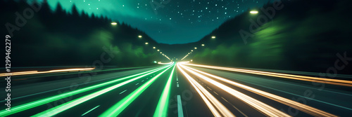 The watermark will not be included on Wall mural.: 3d rendering view of highway in city high speed motion blur - ai generated image