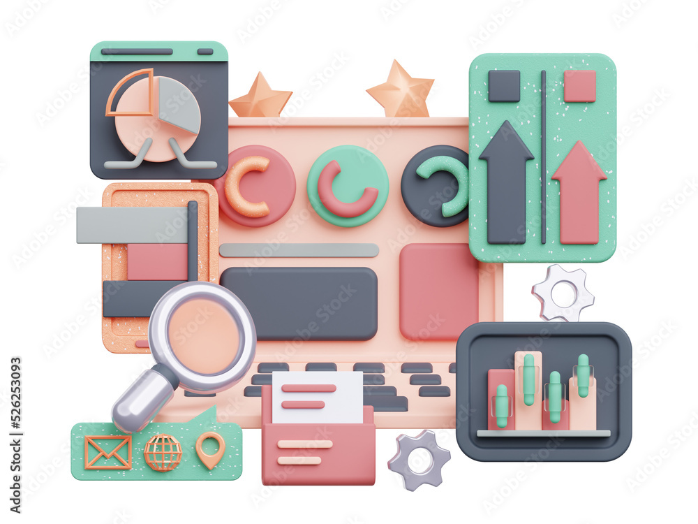 Wall mural 3d rendering website monitoring dashboard flat icon - Wall murals Wall mural 3d rendering website monitoring dashboard flat icon - Wall murals
