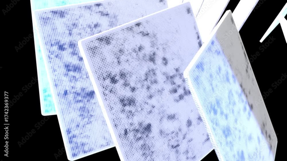 3d rotating rectangle bar animation with halftone texture and modern abstract design on dark backgroWall mural