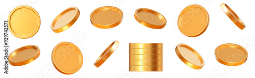 The watermark will not be included on Wall mural.: 3d set realistic golden coins with different angles - symbol of gold and wealth - stock vector illustr