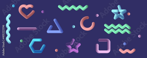 Wall mural 3d shapes. different geometric shapes in 3d design. liquid geometric shape with color. background. v