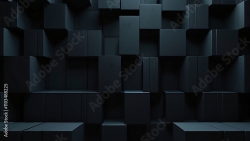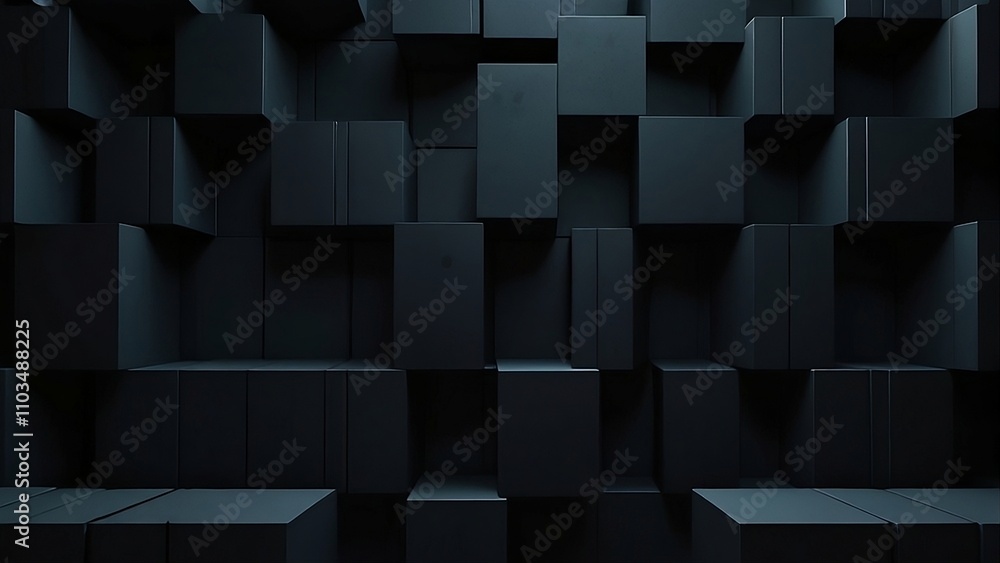 The watermark will not be included on Wall mural.: 3d styles abstract black cube pattern background - dark pixel loop