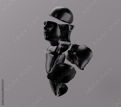 The watermark will not be included on Wall mural.: 3d surrealistic illustration of a shattered statue of a man floating in the air -