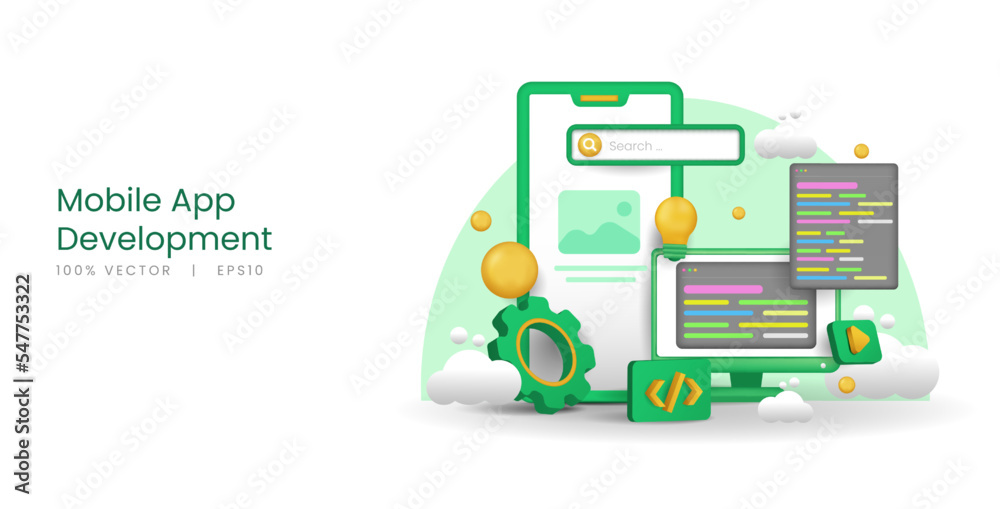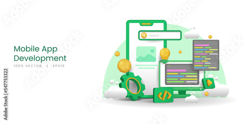 Wall mural 3d vector smartphone and monitor with the concept of mobile application development.