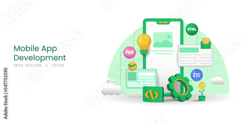 Wall mural 3d vector smartphone with the concept of mobile application development.