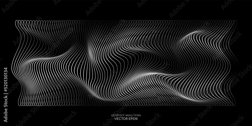 The watermark will not be included on Wall mural.: 3d vector wave lines pattern smooth curve flowing dynamic white light isolated on black background f