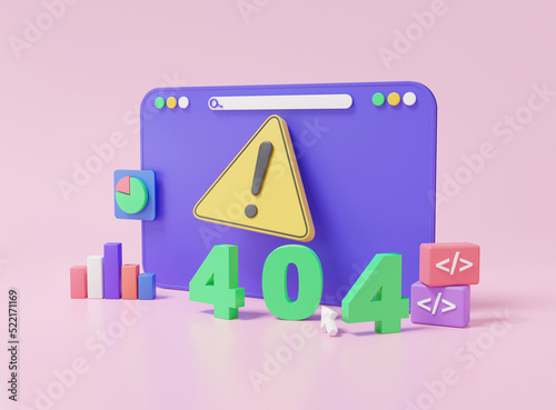 Wall mural 3d web browser, 404 error page not found, system maintenance updates concept. triangle warning alert - Wall murals Wall mural 3d web browser, 404 error page not found, system maintenance updates concept. triangle warning alert - Wall murals