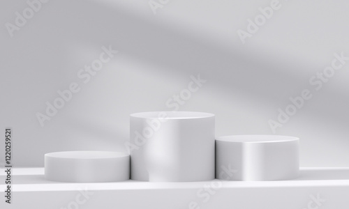 3d white podium with light and shadow - abstract geometric composition in minimalist design - 3d studiWall mural