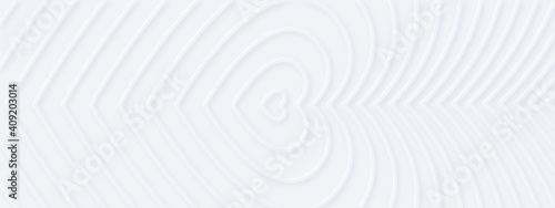 Wall mural 3d white rippled hearts with soft shadow on light bg from center. abstract elegant seamless pattern.
