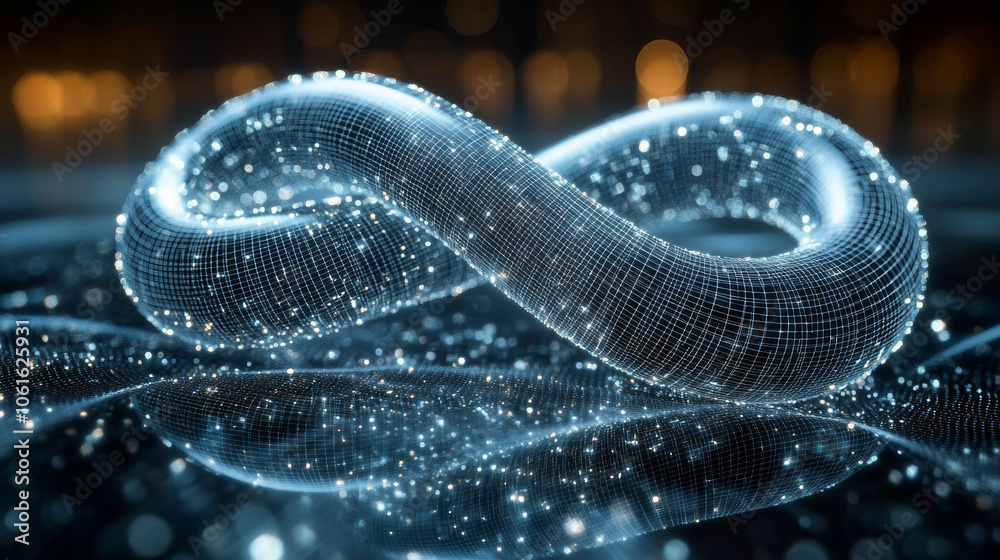 Wall mural 3d wireframe infinity loop symbolizes endless possibilities and connections, glowing with digital li