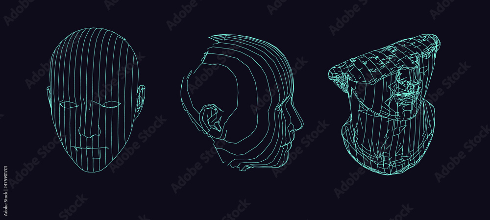Wall mural 3d wireframe of a human head. concept for artificial intelligence and neural networks themes. - Wall murals Wall mural 3d wireframe of a human head. concept for artificial intelligence and neural networks themes. - Wall murals