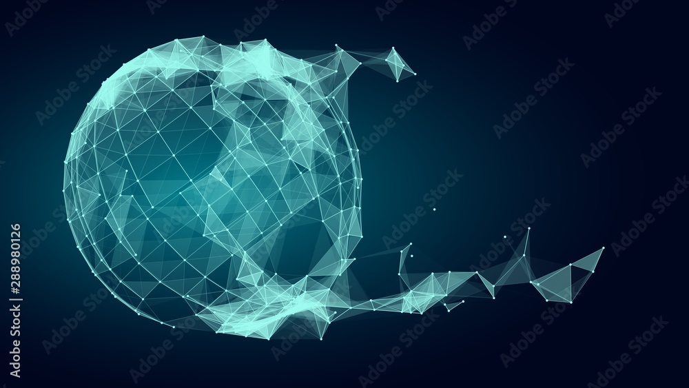 The watermark will not be included on Wall mural.: 3d wireframe sphere - abstract shape with connected lines and dots - vector illustration -