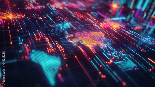 The watermark will not be included on Wall mural.: 3d world map with lines representing global trade, connecting continents with bright, glowing paths