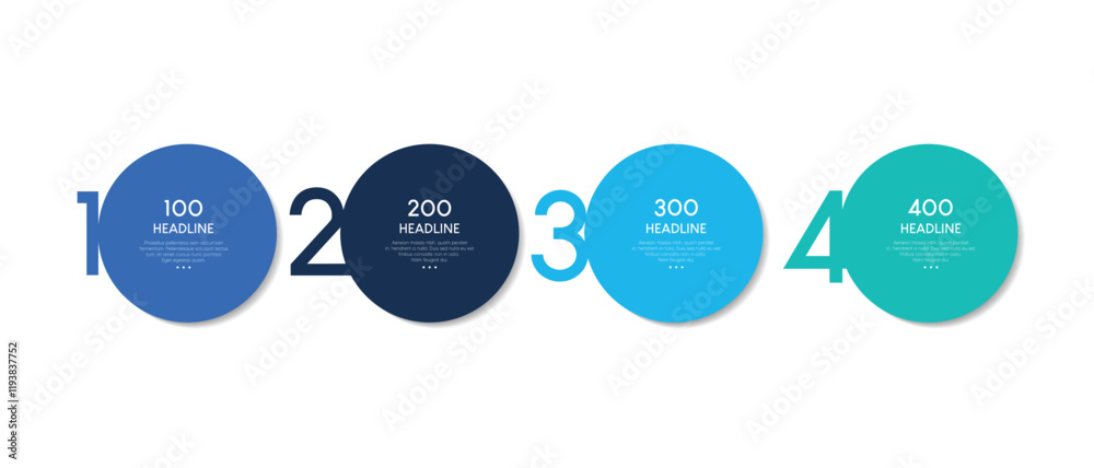 The watermark will not be included on Wall mural.: 4 elements scheme, diagram - four empty connected circles - infographic template -