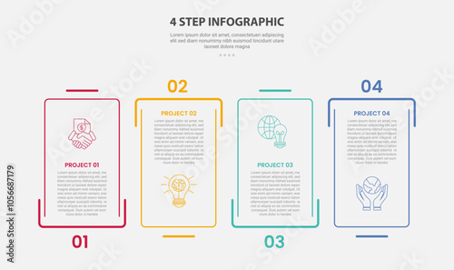 4 points template infographic outline style with 4 point step template with creative rectangle box wWall mural