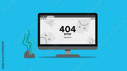 Wall mural 404 error page not found notification. desktop with trouble page on the web screen. flat style vecto