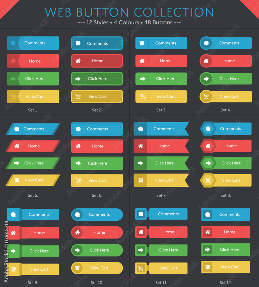 The watermark will not be included on Wall mural.: 48 web button collection in 12 different styles