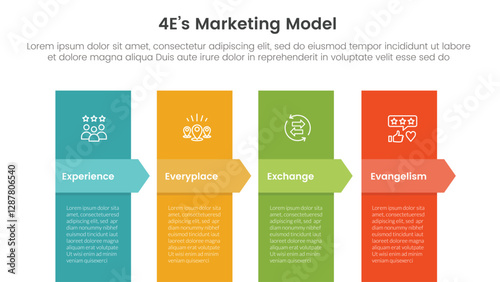 The watermark will not be included on Wall mural.: 4e marketing model infographic 4 point stage template with vertical box and arrow badge header for s