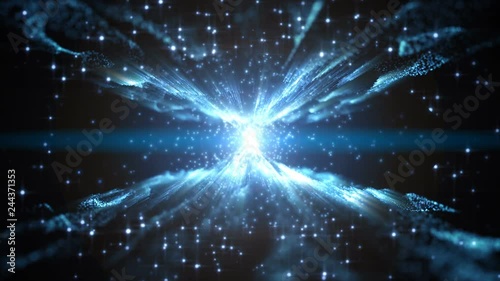 Wall mural 4k abstract motion background animation shining particles magic dust light projection beams rays wav