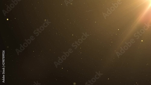 Wall mural 4k beautiful gold floating dust particles with flare on black background in slow motion. looped 3d a