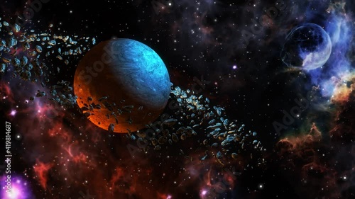 The watermark will not be included on Wall mural.: 4k cgi animation belt of asteroids orbiting around an alien planet floating in space 4k