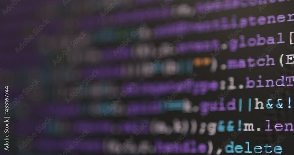 Wall mural 4k close up shot programming tag code on pc monitor scroll down. background concept for programming