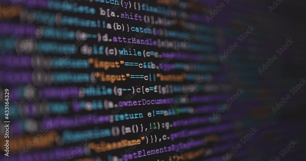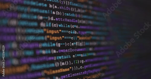 Wall mural 4k close up shot programming tag code on pc monitor scroll down. background concept for programming